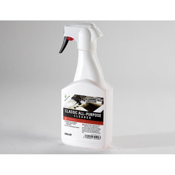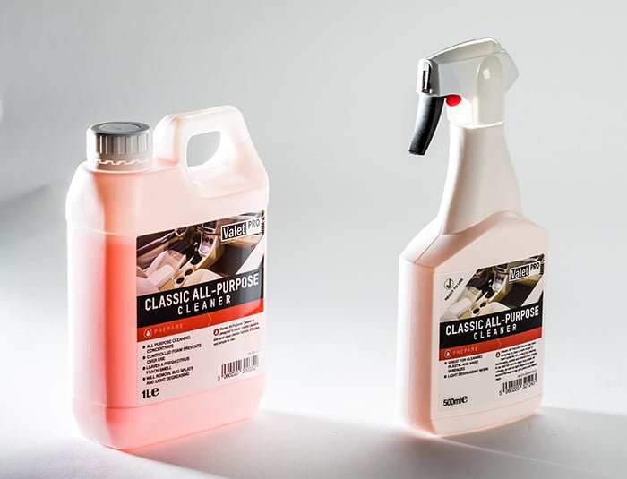 Classic All Purpose Cleaner is one of ValetPROメs original products and will serve you well. No changes have been made as this is simply a great product that performs well. Although designed for interior use, it performs brilliantly when removing bug splats and general.